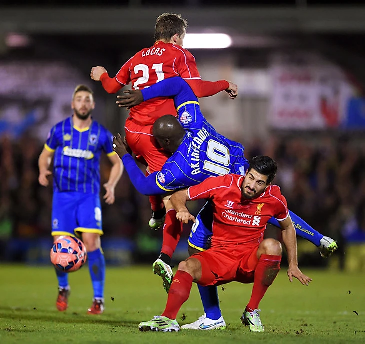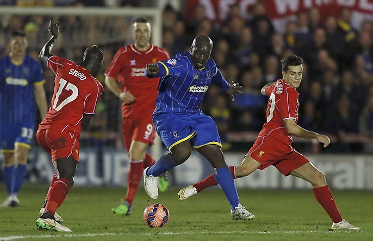 Огромный нападающий «Уимблдона» Адебайо Акинфенва весит 108 кг. Вчера он вышел в основном составе Кубка Англии против «Ливерпуля». До игры он шутил, что соперники, увидев его, скажут: «О нет, что это»?!