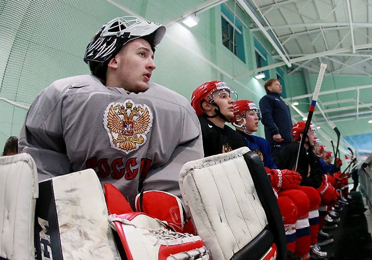 Голкипер Денис Костин (на первом плане) так и не сыграл ни одного матча на МЧМ, но был готов в любом матче выручить сборную России.