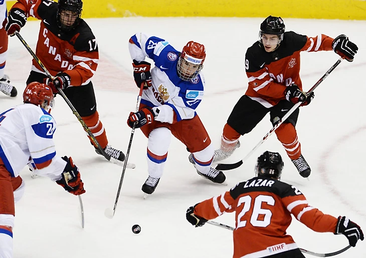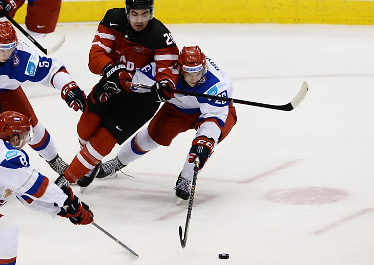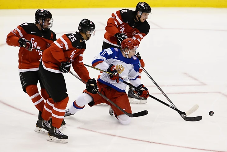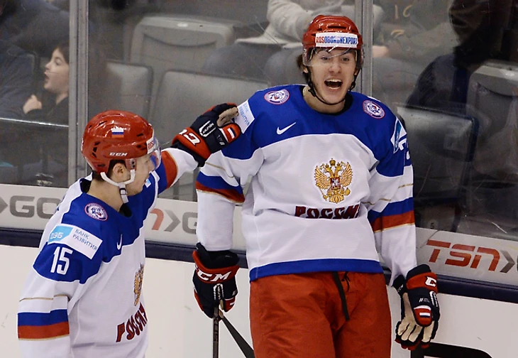 Защитник сборной России Александр Брынцев (слева) уже знает, что такое взрослый хоккей, но и на молодежном уровне он проявил себя весьма неплохо.
