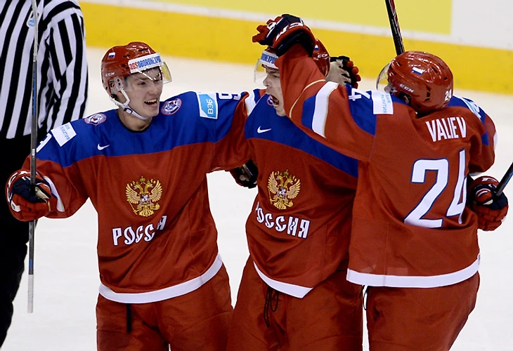 Нападающий Иван Барбашев (справа) стал главной звездой молодежной сборной России, шикарно отыграв в финале и набрав 6 (3+3) за весь турнир.