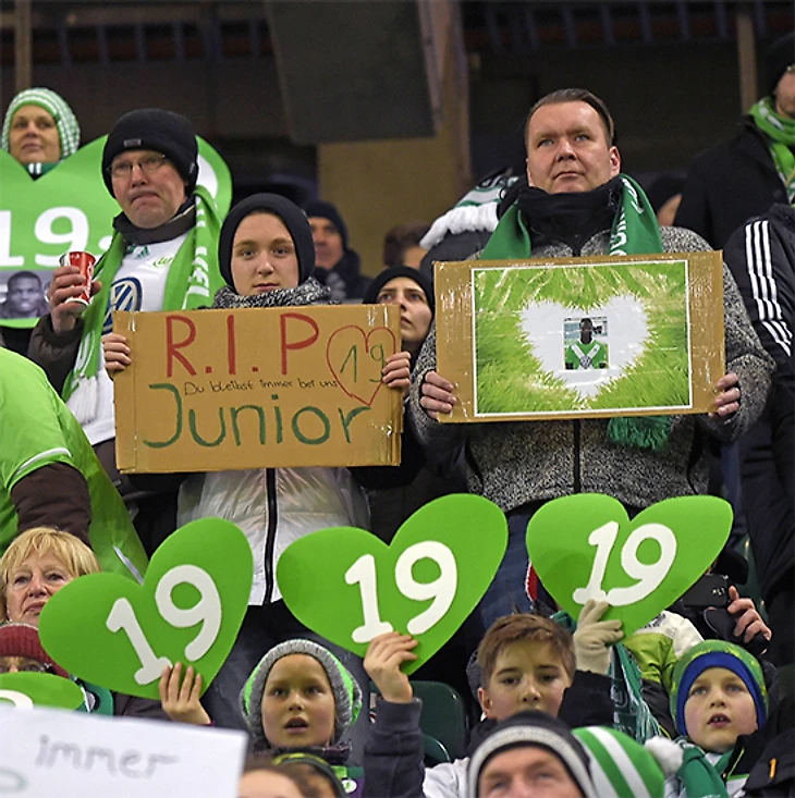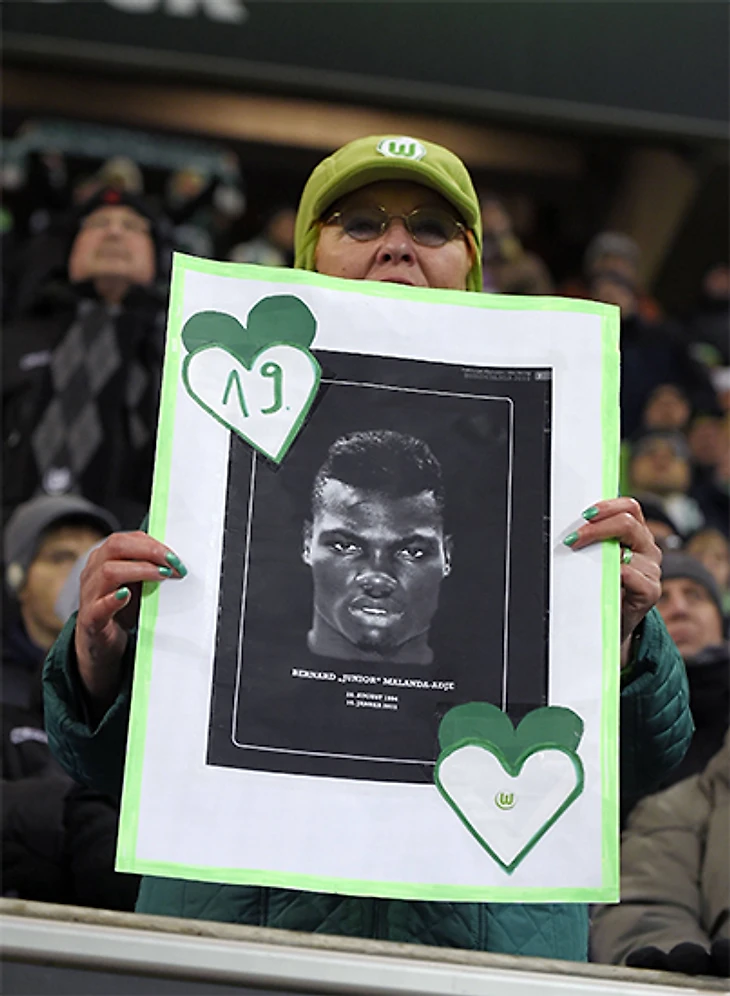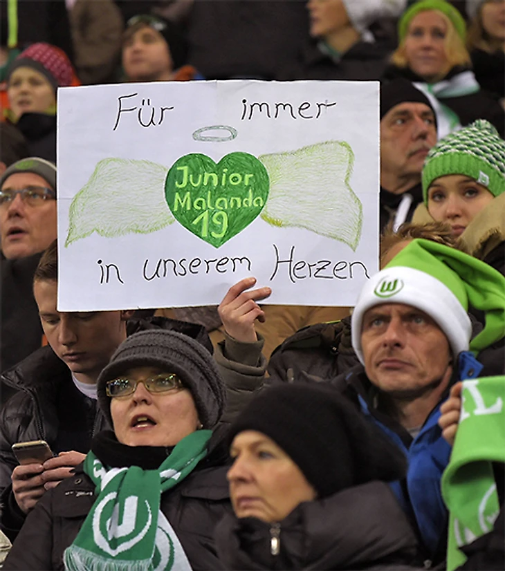 Матч, завершившийся так радостно для «Вольфсбурга» и его фанов, начался с красивой и грустной церемонии памяти их недавно погибшего игрока – Жуниора Маланда.