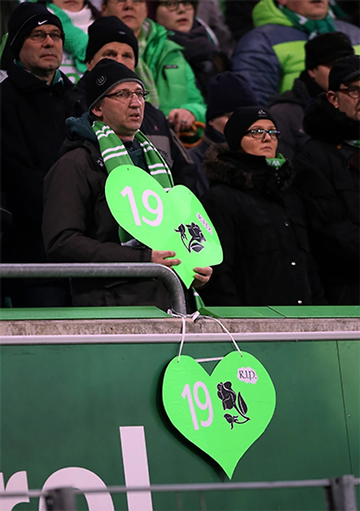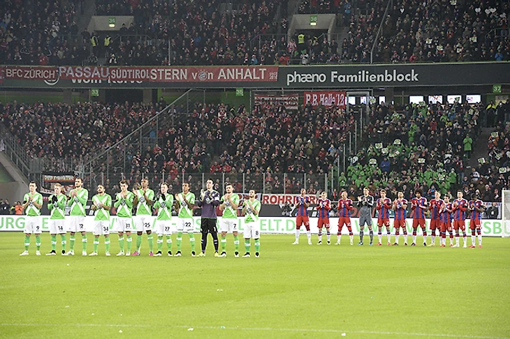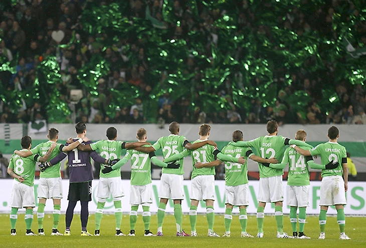 Первый домашний матч «Вольфсбурга» после этого не мог начаться иначе. Минута молчания: