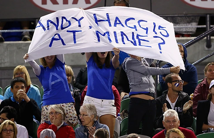А эти ребята поддерживают Маррея еще с первых выступлений в Мельбурне и дружат с его мамой, которая иногда помогает им с билетами.