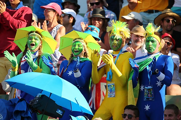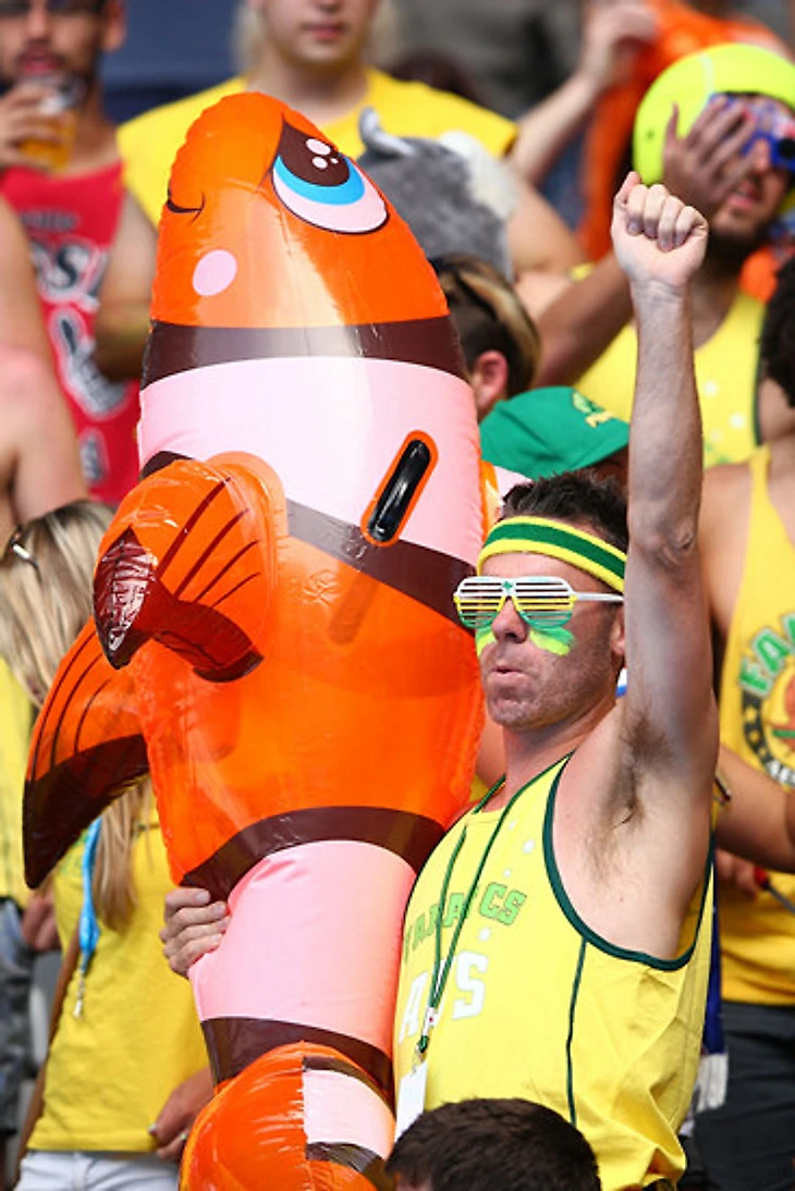 Вообще, «австралийские» цвета переосмысляются в нарядах и на лицах болельщиков на регулярной основе.