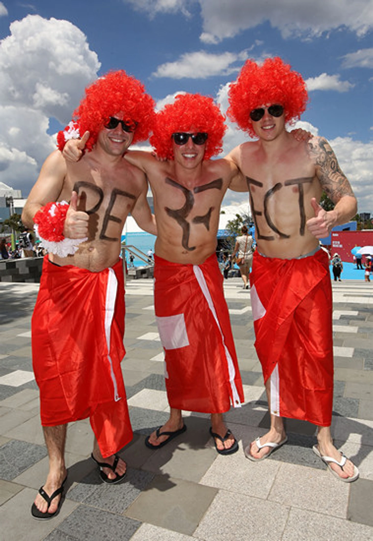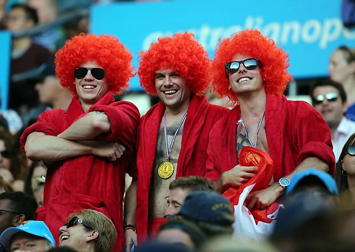 Например, эти трое ребят в Мельбурне болели за Роджера Федерера. Одеты они были как раз по погоде.