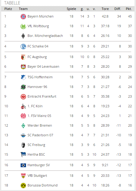 Покамест, мы фиксируем разницу между первым и вторым местом в 8 очков. Следующие соперники «Баварии» и «Вольфсбурга» – «Шальке» и «Айнтрахт» соответственно.