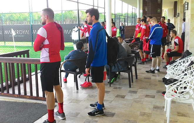 Ближе к вечеру в Белеке слегка похолодало: солнце скрылось за тучами, поднялся небольшой ветерок. Большинство футболистов в связи с этим утеплились в кофты и штаны, тем более что второй занятие, в отличие от утреннего, оказалось менее насыщенным в плане физической нагрузки. Пока на соседнем поле гремел «товарняк» венгерского и немецкого завсегдатаев низших лиг, парни Мурата Якина разбились на три большие группы и поиграли в квадрат. Сам швейцарец, к слову, также вошёл в одну группу с Хурадо, Карлосом, Джано, Кротовым, Чельстрёмом и Эбертом и по полной программе погонял мяч вместе с игроками, прерываясь раз в 10-15 минут на лёгкую растяжку.