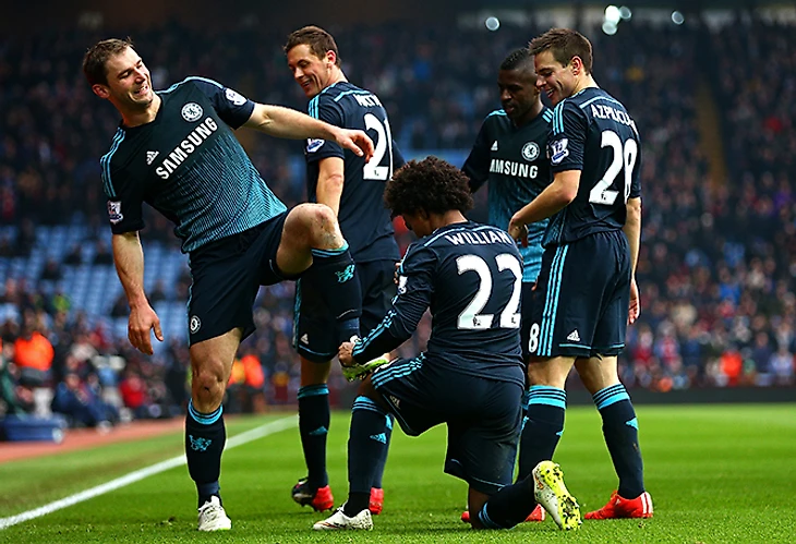 Великолепный гол Бранислава Ивановича принес лидеру чемпионата победу над «Астон Виллой» – первую для Жозе Моуринью за шесть визитов на «Вилла Парк». Эден Азар с передачи Виллиана довольно рано открыл счет, после чего гости позволили сопернику больше владеть мячом, и последствия не замедлили наступить. В начале второго тайма после навеса Карлеса Хиля свободный от опеки Жорес Окоре головой пробил Куртуа, и «Вилла» прервала 11-часовую безголевую серию в чемпионате. 659 минут без гола — четвертый худший показатель в истории АПЛ — теперь для команды Пола Ламберта уже в прошлом.