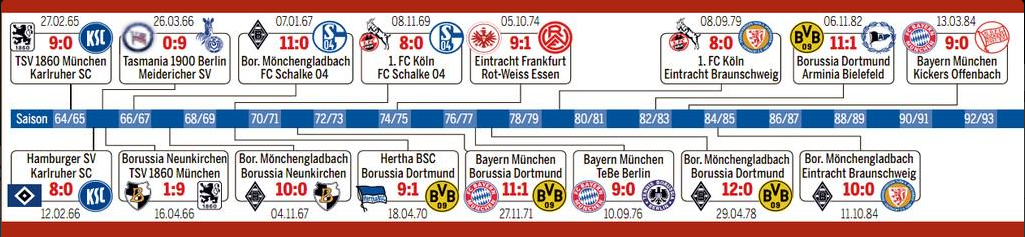 Отметим, что самым результативным туром за всю историю чемпионатов Германии был сыгран в сезоне 1983/1984; тогда в 32-м туре команды забили 53 гола, что равняется 5,88 за один матч.