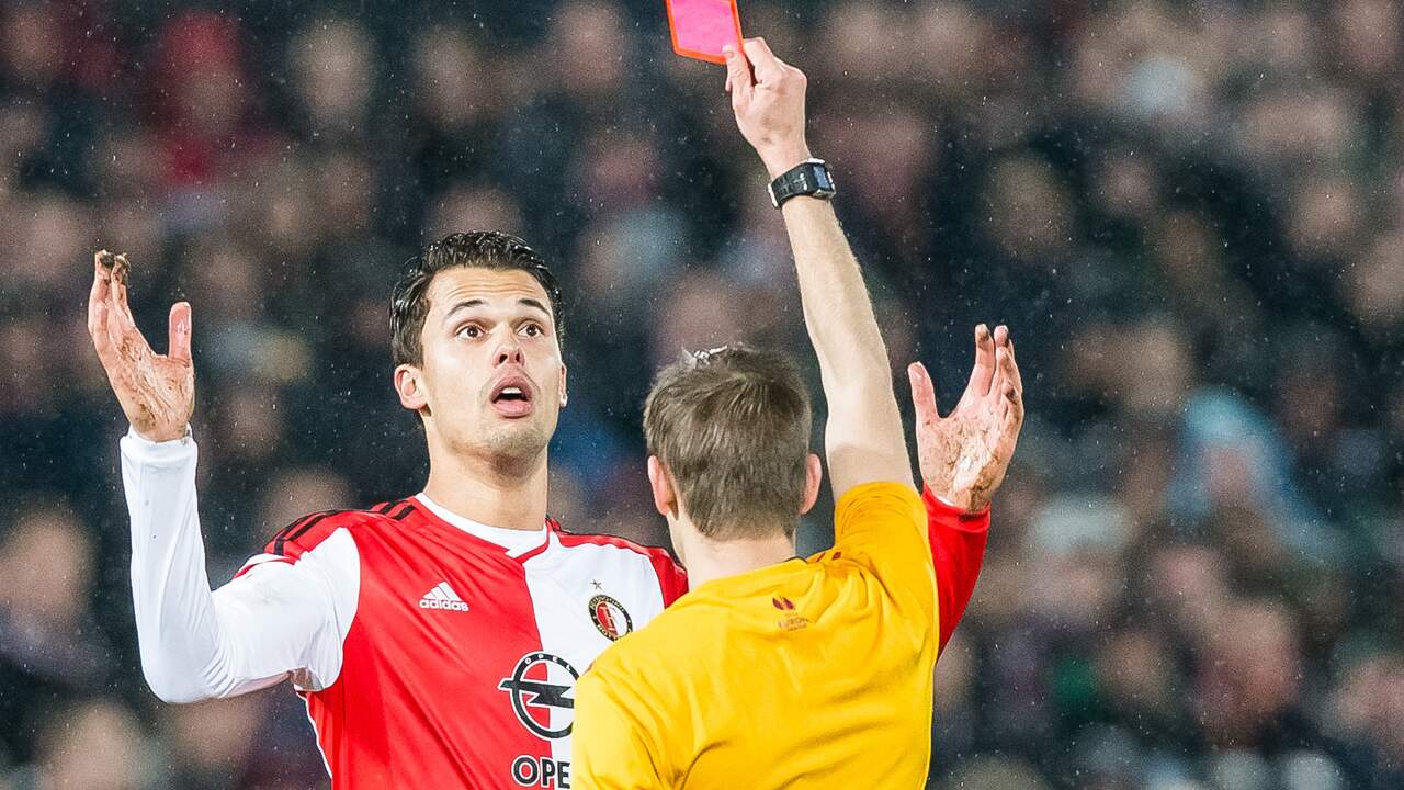 Но подарил он только временное успокоение – с возобновлением игры ее градус только повысился. Не прошло и четверти часа, как Митчел де Вреде сочно въехал в ногу Костасу Маноласу и отправился утихомиривать свой пыл в раздевалку. Надо было видеть лицо юного нападающего, когда он увидел перед собой прямую красную! В принципе, его удивление можно было понять. Фол был грубый, но арбитр, не будь он столь заведен поведением болельщиков, мог бы ограничиться предупреждением. Реакция с трибун последовала такая, что Тюрпен был вынужден временно увести команды с поля.