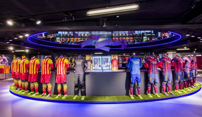 И вот, вы ходите к изумрудному газону Камп Ноу, как это делают каждые выходные Лео Месси, Жерард Пике или Андреас Иньеста. Газон и вправду изумрудный, и величие стадиона с поля ощущается намного сильнее чем с трибун. А теперь представьте, себя, выходящим в заполненную 100-тысчную чашу из под трибунного помещения. Я думаю каждый человек будет способен сделать маленький подвиг. Пройдя еще немного по сине-гранотовым коридорам стадиона, закончится ваша небольшая экскурсия по Камп Ноу. Выходя со стадиона вы попадете в клубный магазин, где сможете приобрести любимое джерси или какой-либо сувенир. С символикой Барселоны можно купить все что угодно – начиная от банальной кружки, заканчивая чипсами или газировкой. Клубный магазин достаточно большой – он находится на двух этажах прямо в здании стадиона. Поэтому если вы и решили, что-то приобрести себе или в подарок, то думаю, данное место не оставит вас равнодушным.