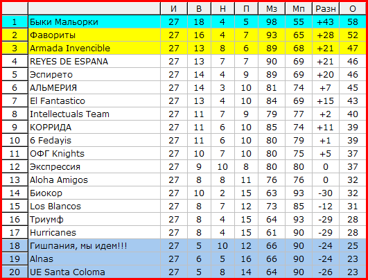 Итоги 27 тура командного турнира H2H Liga BBVA 2014/2015