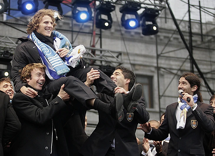 Софи смеется, когда я начинаю твердить о патриотизме, но я на самом деле очень горжусь Уругваем. У нас маленькая страна, в которой немного проблем, особенно по сравнению с другими странами Латинской Америки. У нас скромная страна, но сплоченная и счастливая. В 2013 году журнал The Economist признал нас страной года. Находясь вдали от дома, мы становимся еще патриотичнее. Я возвращаюсь на родину не так часто, как хотелось бы. По правде говоря, думаю, я скучаю по тем вещам, которые, находясь там, я либо не замечаю, либо не уделяю им должного внимания, хотя на расстоянии я понимаю, что они того стоили. Я запоминаю хорошее. И оказаться на «Монументале», увидеть его таким, услышать его таким, было просто невероятно. Везде мелькали небесно-голубые футболки. Было действительно трогательно праздновать триумф перед фанатами. Некоторые баннеры высмеивали Аргентину – на одном из них рассказывалось, как «правильно» пить мате. Победа на Кубке Америки-2011 была феноменальным достижением, а победа в Аргентине делала его еще более выдающимся.