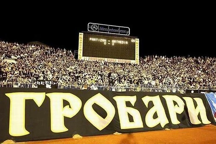 Гробари и Делиje. Самые известные и активные группировки фанатов белградского Партизана и Црвены Звезды соответственно.