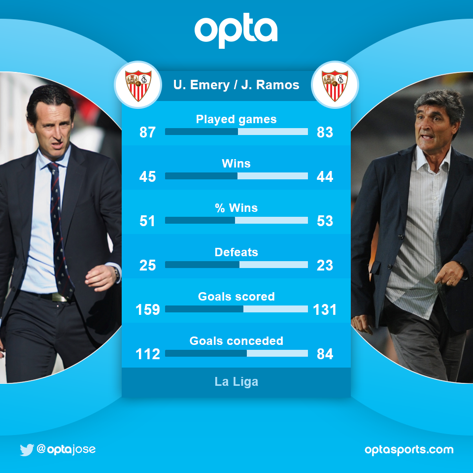 8 апреля 2015, 14:24 1 мин. Натренировал. Унаи Эмери обошёл Хуанде Рамоса по числу побед во главе «Севильи»Ex-GeniusАвтор272 подписатьсяРамосу для своего достижения потребовалось 83 игры, Эмери - 87Унаи ЭмериСевильяХуанде РамосЛа Лига