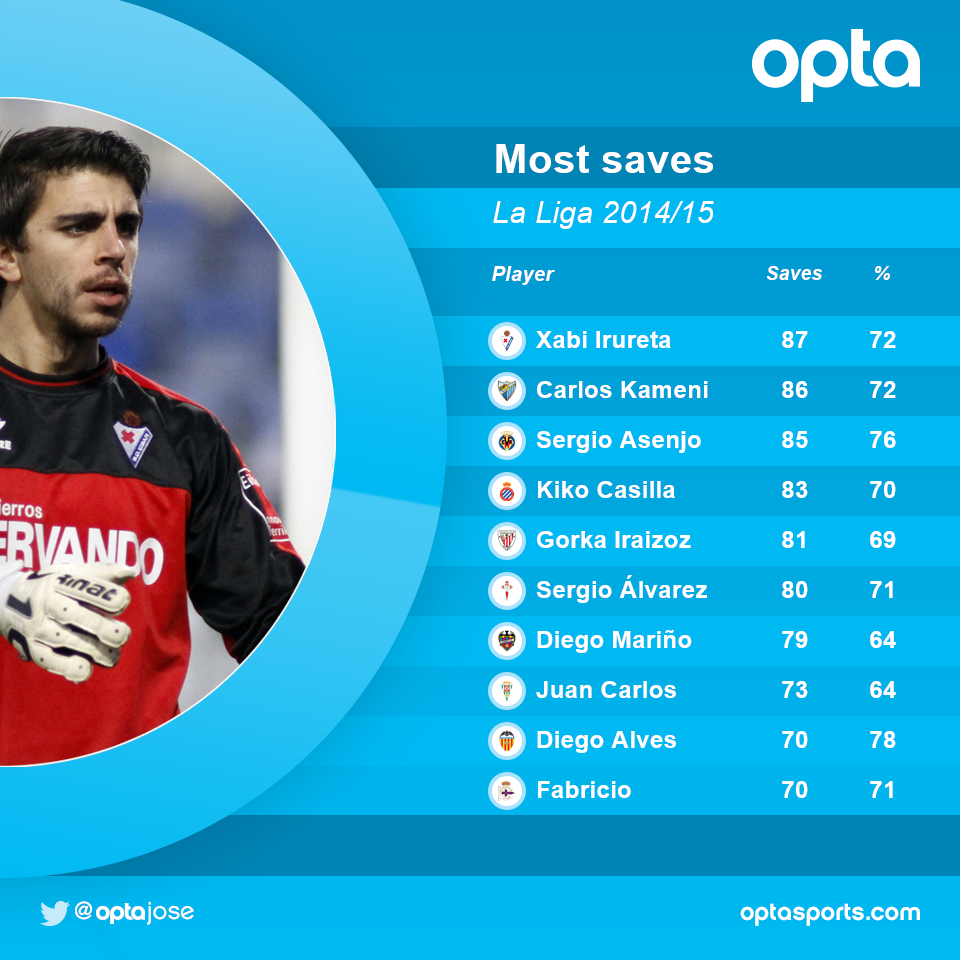 8 апреля 2015, 17:57 1 мин. Спаситель. Хаби Ирурета сделал больше всего сэйвов в этом сезоне ПримерыEx-GeniusАвтор272 подписатьсяСтраж ворот «Эйбара» 87 раз спасал свою команду от гола, отразив 72% ударовФабриЛа ЛигаИдрисс КамениЭйбарДиего АлвесГорка ИрайсосСерхио АсенхоХаби ИруретаКико Касилья