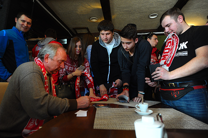 В субботу в Сокольниках легендарный тренер красно-белых встретился с болельщиками.