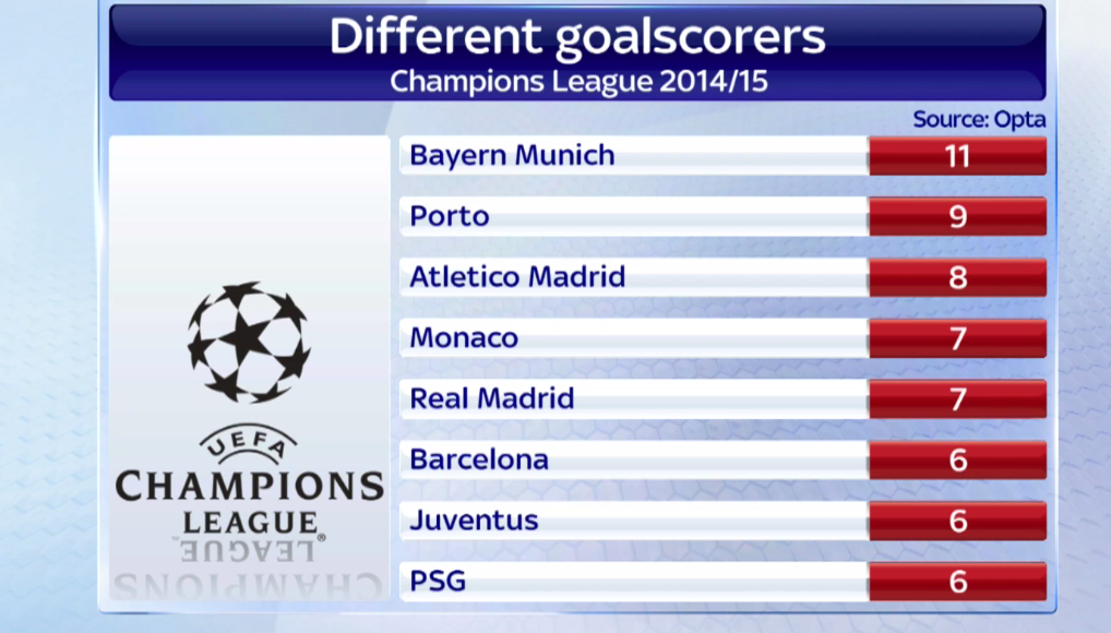 16 апреля 2015, 08:37 1 мин. Больше всего игроков отметились в этом сезоне голом в составе «Баварии»Ex-GeniusАвтор272 подписатьсяСтавший вчера автором единственного гола мюнхенцев Тьяго Алькантара стал 11-м футболистом клуба, забившим в Лиге чемпионов 2014/15ПортуБарселонаРеал МадридМонакоПСЖЛига чемпионов УЕФААтлетикоЮвентус