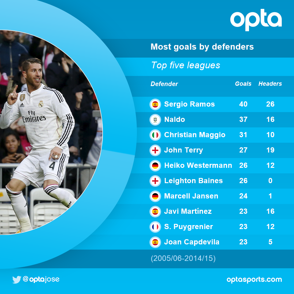 Рамос, Терри и Налдо, только голы с игры, а остальные - не в счет.