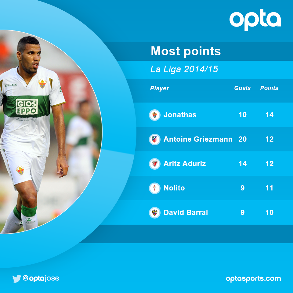 23 апреля 2015, 12:50 1 мин. 0Сокровище. Голы Жонатаса принесли больше всего очков его командеEx-GeniusАвтор10 мячей бразильца обеспечили «Эльче» 14 баллов в таблицеАтлетикНолитоЖонатасЛа ЛигаСельтаЭльчеАриц АдурисЛевантеАнтуан ГризманнАтлетико