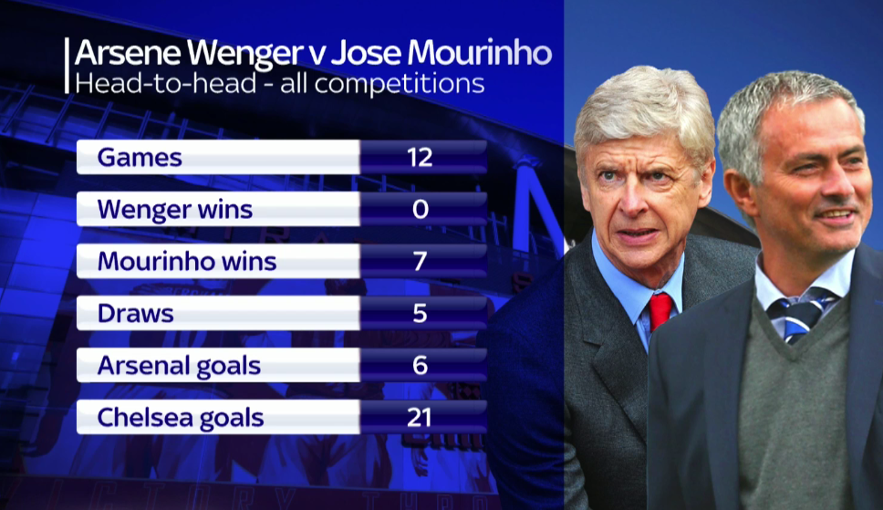 Тут указана только противостояние Венгера и Моуриньо, а так Арсенал забил в ворота жалкого еврейского проекта 259 мячей