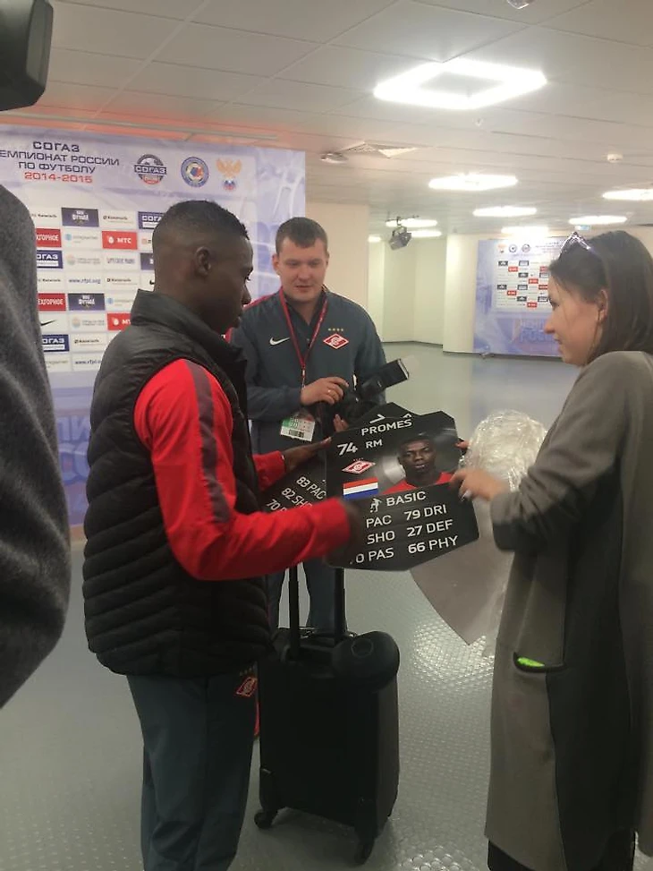 После выхода из раздевалки Куинси Промесу вручили карточку игрока из FIFA 15 – голландец попал в команду недели.