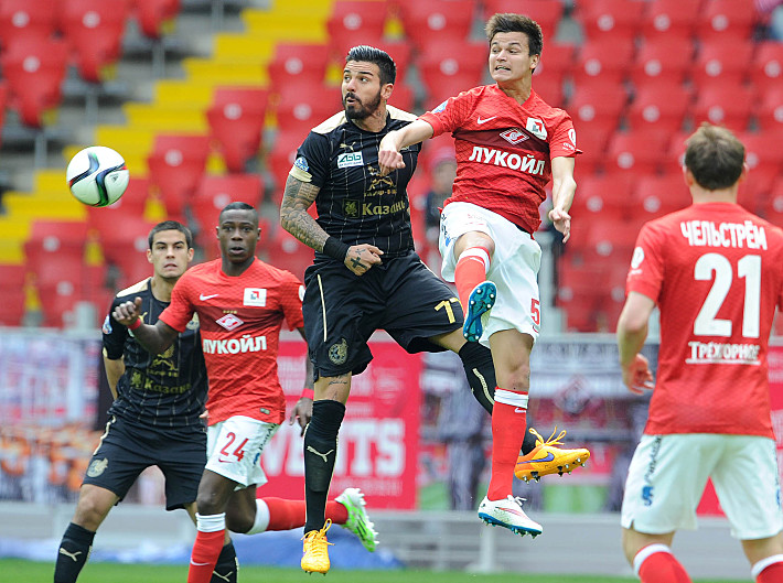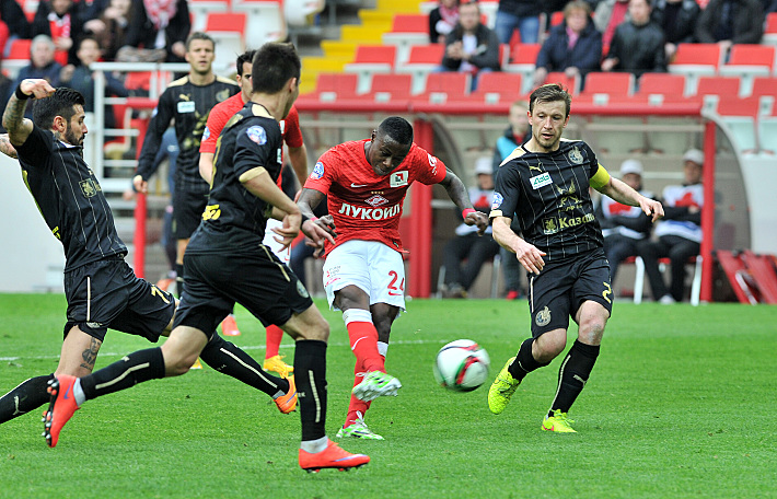 Первый подход "Спартака" к воротам казанцев случился на 14-й минуте, когда Кротов на рывке ушел у лицевой линии от Набиуллина и навесил на Ромулу – защитник бросился под удар. На 22-й минуте Кротов откатил мяч под удар Промесу – мяч, задев ногу Наваса, просвистел на угловой в сантиметрах от дальней штанги. На 41-й минуте Кротов почти без посторонней помощи создал главный момент первого тайма – получив пас от Глушакова, ложным замахом убрал с дороги Котуньо и с линии штрафной бил точнехонько в правый нижний угол. Быть бы голу – да Рыжиков достал почти не берущийся мяч.