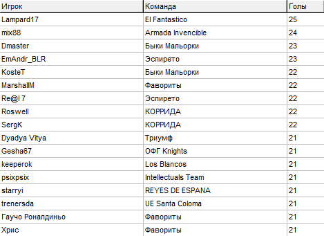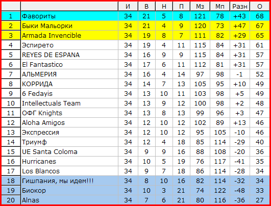 Турнирная таблица: