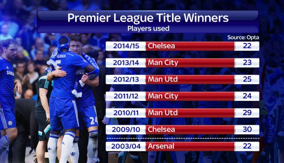 Со времён «Арсенала» 2003/04 чемпион не использовал так мало игроков по ходу сезона: