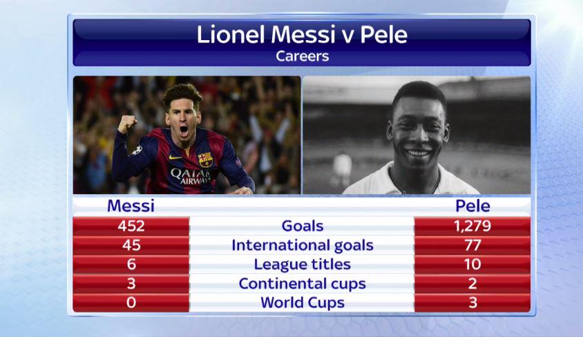 Глупое сравнение! В то время когда играл Пеле не было таких терминов как «автобус» им не важно было сколько голов пропустят! Да и Бразильский чемпионат по сравнению с Ла Лигой просто двор! Играй Месси в то время в том чемпионате возможно он забил бы еще больше а играй Пеле в Ла Лиге в ЛЧ он возможно был бы условным Суаресом или Фалькао!