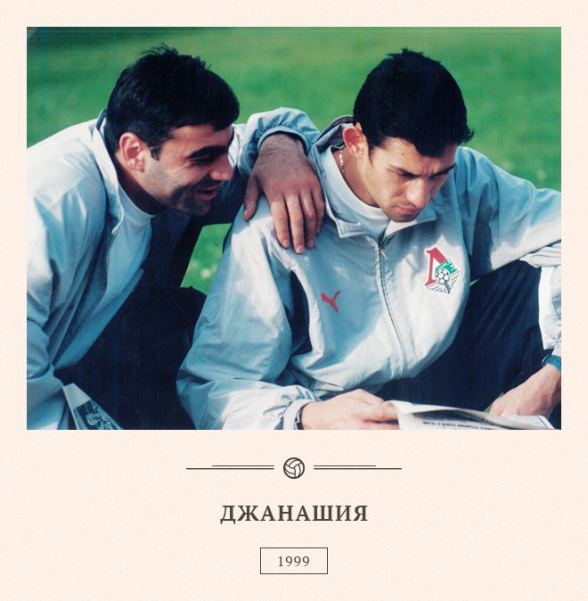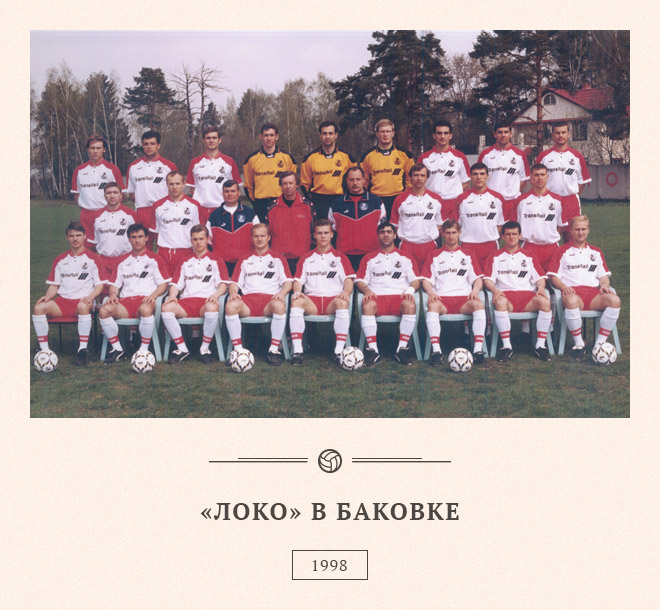 Командное фото «Локомотива». Родная база в Баковке. Не был в этом местечке уже около 20 лет, очень сильно по нему успел соскучиться. На фото слева-направо: Владимир Маминов, Игорь Черевченко, Алексей Косолапов, я, Хасан Биджиев, Александр Подшивалов, Саркис Оганесян, Игорь Чугайнов, Алексей Арифуллин (верхний ряд), Юрий Дроздов, Виталий Веселов, тренер Владимир Хазраилович Эштреков, главный тренер команды Юрий Сёмин, тренер вратарей Александр Павлович Ракитский, Александр Бородюк, Альберт Саркисян, Евгений Харлачёв (средний ряд), Дмитрий Лоськов, Бахва Тедеев, Николай Рындюк, Андрей Лаврик, Андрей Соломатин, Заза Джанашия, Олег Гарас, Сергей Гуренко, Александр Смирнов (нижний ряд). «Локомотив» стал для меня по-настоящему родным клубом. В первую очередь в футболе слежу за «железнодорожниками» и «Спартаком». Призываю не обижаться болельщиков красно-белых и красно-зелёных. «Спартак» и «Локомотив» — два главных клуба в моей жизни. Не хочу выделять ни одну из команд.