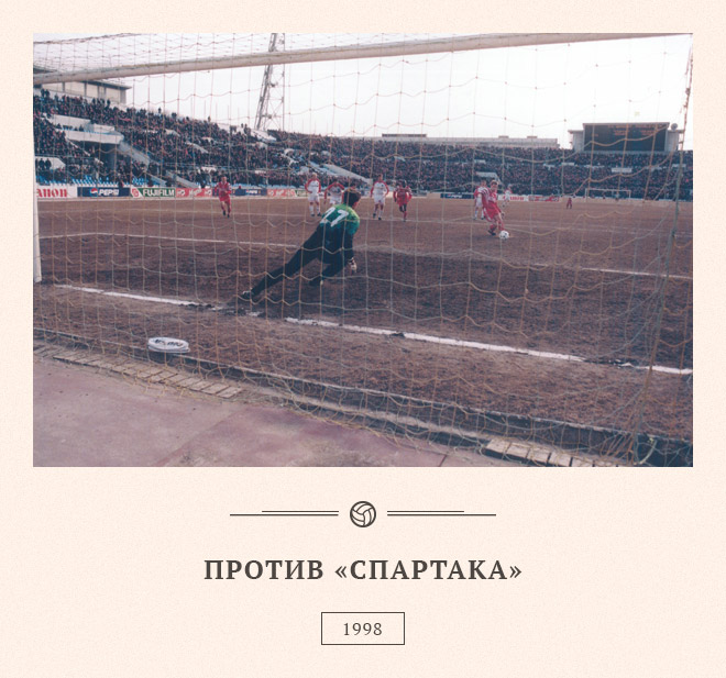 Стадион «Динамо». Чемпионат России. Моя первая игра за «Локомотив» против «Спартака». Нападающий красно-белых Анатолий Канищев бил пенальти в наши ворота, но я отразил этот удар. Однако тогда «Спартак» всё равно нас обыграл со счётом 2:0. В 1998 году у всех игроков «Локомотива» основного состава была одинаковая зарплата – 3 тысячи долларов. Ни у кого не было друг к другу зависти. Все были равны.