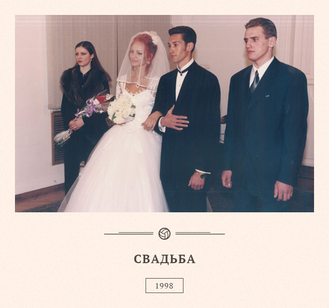 На фото с женой Еленой и Дмитрием Булыкиным. В тот год мы с Леной поженились и до сих пор вместе. У нас с ней два сына – Марсель и Руслан. Дмитрий Булыкин на свадьбе был свидетелем с моей стороны. В тот период мы с ним играли вместе за «Локомотив» и поэтому сдружились. В наше время c Булыкиным, к сожалению, видимся редко. Однако мы с ним вместе играли за сборную мира на последнем Кубке Легенд. Тряхнули стариной!