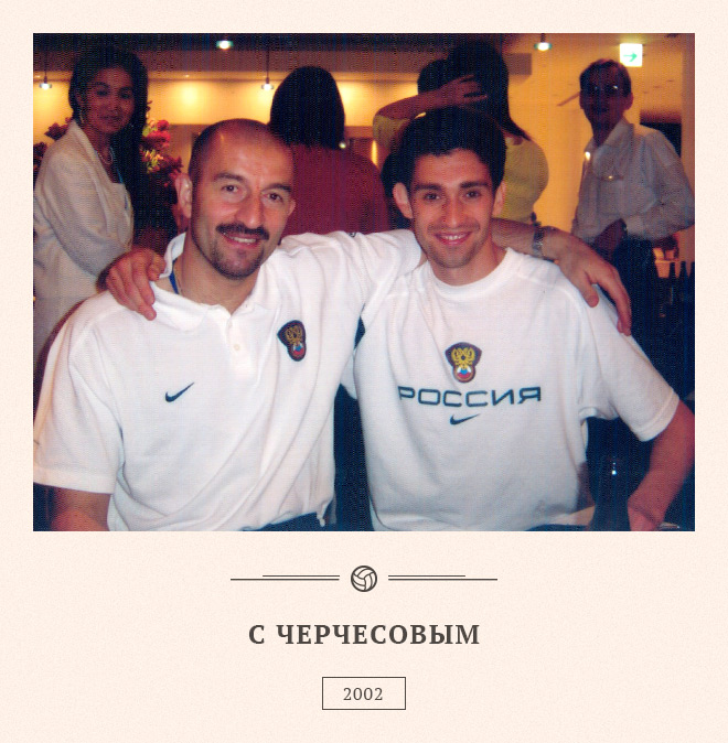 Чемпионат мира в Японии и Корее. Основной и второй вратари сборной. Судя по нашему хорошему настроению, тогда мы ещё не вылетели с чемпионата мира. На том мундиале во время тренировок Cтанислав Черчесов выглядел очень прилично и играл даже сильнее меня. Он давал мне очень ценные советы. Черчесов смог бы спокойно в свои 38 лет сыграть на мундиале. Кстати, сейчас мы с ним живём практически рядом. Однако за полтора года я его ни разу так и не увидел. Но постоянно замечаю динамовскую машину во дворе. Через ваше издание передаю ему привет и надеюсь, что мы всё-таки когда-нибудь пересечёмся с ним хотя бы в гараже.