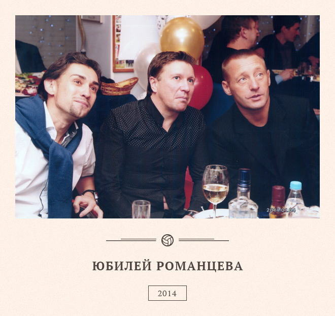 Юбилей Олега Ивановича Романцева. На фото рядом со мной бывшие спартаковцы — Валерий Кечинов и Андрей Тихонов. С Олегом Ивановичем Романцевым провёл три периода работы. Первый — когда я пришёл в «Спартак», будучи молодым голкипером. Тогда у меня не всё задуманное получилось. Я был молодым и самолюбивым и поэтому сильно обижался из-за того, что не всегда попадал в стартовый состав команды. Второй период отношений связан с хорошей игрой за «Локомотив». В тот момент Романцев начал вызывать меня в сборную, где мы уже полостью нашли общий язык. У нас было два прекрасных года совместной работы. Третий этап – встречи на турнирах ветеранов «Спартака». С Романцевым у нас сейчас замечательные отношения.