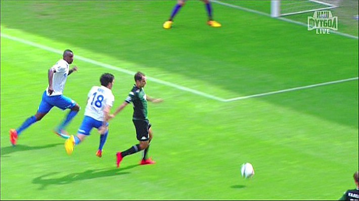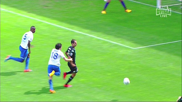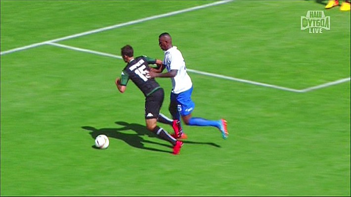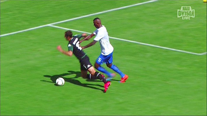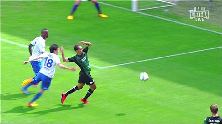79 минута. Теперь уже Дуглас толкает в спину в своей штрафной убегающего от него того же Широкова. Лапочкин опять подумал, что это дружеское похлопывание по спине и нарушения не зафиксировал.