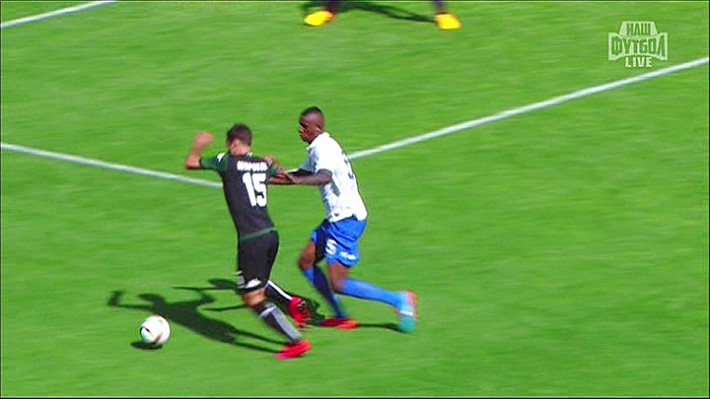 На 36 минуте Жирков в своей штрафной хватает за руку выбегающего на ворота Габулова Романа Широкова. Опасная атака заканчивается падением Романа.