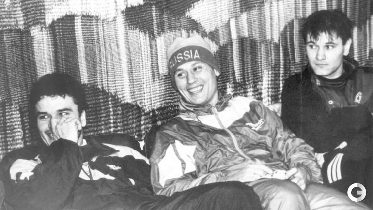 Георгий ЯРЦЕВ (слева) и Дмитрий АЛЕНИЧЕВ после завоевания чемпионского титула в сезоне-1996. Фото Александр ФЕДОРОВ, "СЭ"