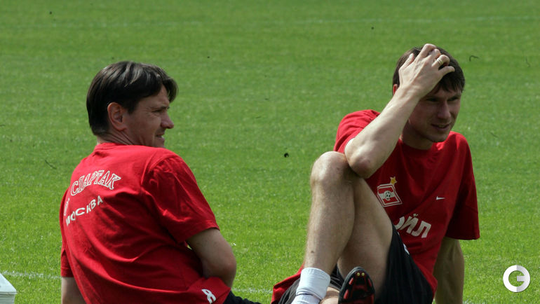 Дмитрий АЛЕНИЧЕВ и Егор ТИТОВ (справа) на тренировке "Спартака".