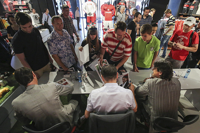 В фирменном магазине «Спартака» на «Открытие Арене» прошла автограф-сессия тренерского штаба красно-белых.