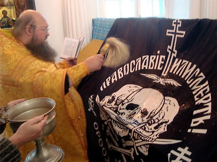 – Ниже – фото, которым вы поделились у себя Вконтакте. Что это за стяг и что он значит? Я вот православный. А если бы нет, то все – смерть?