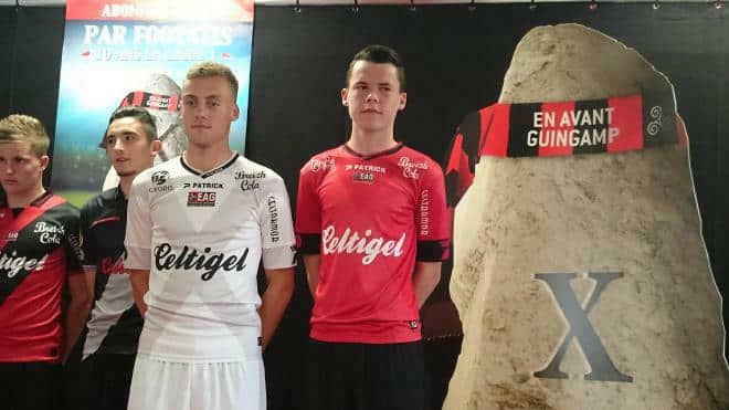 «Лорьян», как и в прошлом году, заимел три комплекта формы. Слева направо на фото расположены выездной, домашний и третий.