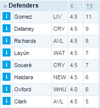 Джозеф Гомес (4.5) и Делэйни (4.5) — пример того, как дешевые защитники могут давать великолепный результат в fantasy. Оба будут играть в основе и дальше.