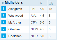 2) Марез, конечно, безупречен и ярок, но не списывайте со счетов Олбрайтона. Его 15 очков — это далеко не случайность, ведь прошлый сезон Марк также заканчивал на очень высоком уровне. К тому же Марез стоит 5.5, а Олбрайтон — всего 5.0.