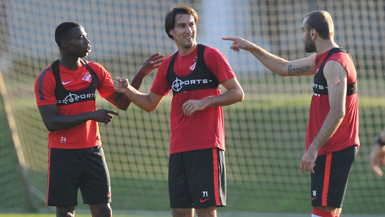 Пока Ромуло лечится, новобранец красно-белых Зе Луиш имеет полное право чуть-чуть пригорюниться. С кем же теперь разговаривать на родном португальском? Однако партнеры не бросают в беде и не дают скучать африканскому нападающему. Опеку над ним, судя по всему, взял Сальваторе Боккетти. Два иностранных футболиста часто держатся вместе, а к полю перед тренировкой они прошагали в теплых дружественных объятиях. Так что не грусти, Зе Луиш!