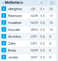 С Сильвой, Марезом и Компани все понятно, а вот появление двух полузащитников из «Норвича» — это интересно. Редмонд (5.5) и Хулахан (5.0) — неплохие варианты на ближайшие туры с учетом удобоваримого календаря.