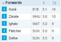 Самое забавное, что сразу пять игроков «Эвертона» умудрились получить бонусы, а Лукаку и Коне захватили топ форвардов с 18 и 16 очками соответственно. Лукаку (8.1) однозначно можно брать, в полузащите есть Баркли (6.6), а в защите Коулмэн (6.0), но если играете в fantasy не первый сезон, то вы его итак прекрасно знаете.