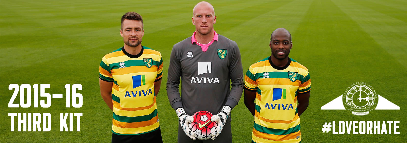 А: Переключимся на новичка сезона. Норвич, Норидж — кому как нравится. Мне больше всего приглянулась третья форма. Домашняя классическая, а гостевая, как я понимаю, шаблон? Если честно, чемпионшип-формы мне нравились куда больше…