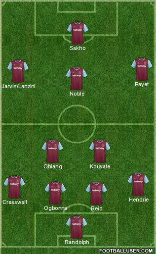 Спасибо "молоткам" за покупку этого "преемника Ширера". Серьезно, огромное спасибо. Хоть Кэролл и был куплен "Вест Хэмом" в 2013 году, большую часть времени он провел в лазарете клуба. Об этом говорит и его статистика, которая насчитывает всего лишь 14 голов в 53 (!) матчах. Поэтому, из-за травмы Валенсии и Сарате, единственным выбором для Билича в качестве центр-форварда, будет являться Диафра Сахо. Также в матче будет отсутсвовать основной кипер "молотков" - Адриано.Держа в голове эти два факта, примерный состав Вест Хэма будет выглядеть так: