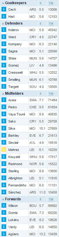Продаем весь свой состав кроме тех, чья цена уже подросла от цены покупки, и набираем тех игроков, которых активно скупают другие менеджеры. На утро понедельника таблица скупки такова: